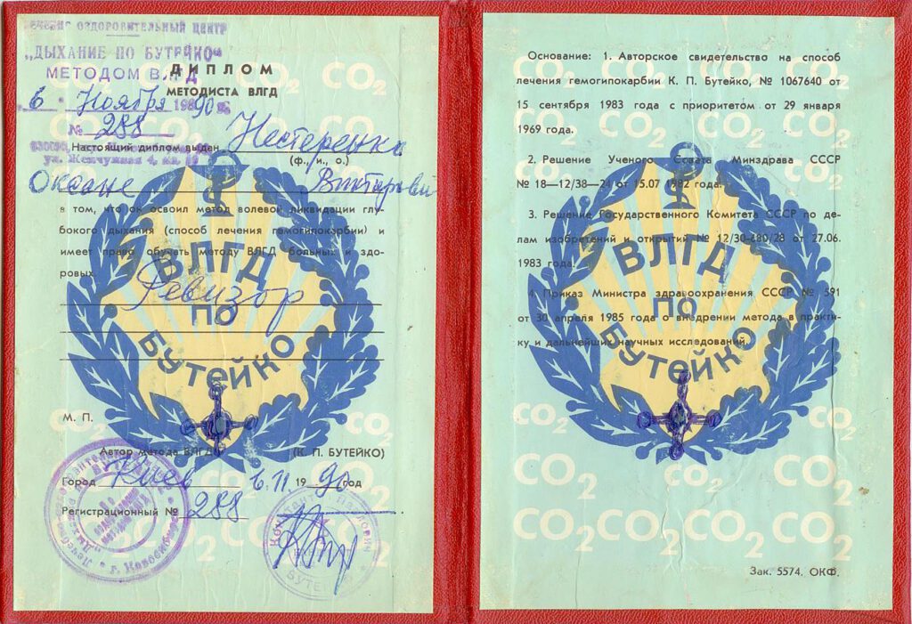 I am a graduate of O.O. Bohomolets Kyiv Medical University, a direct student of K. Buteyko in Ukraine, and a certified instructor of his method.